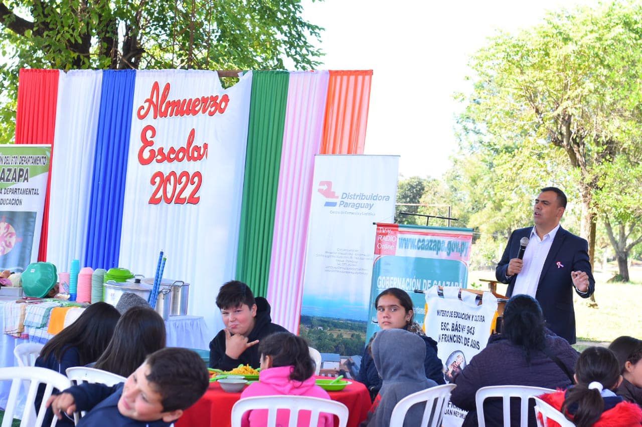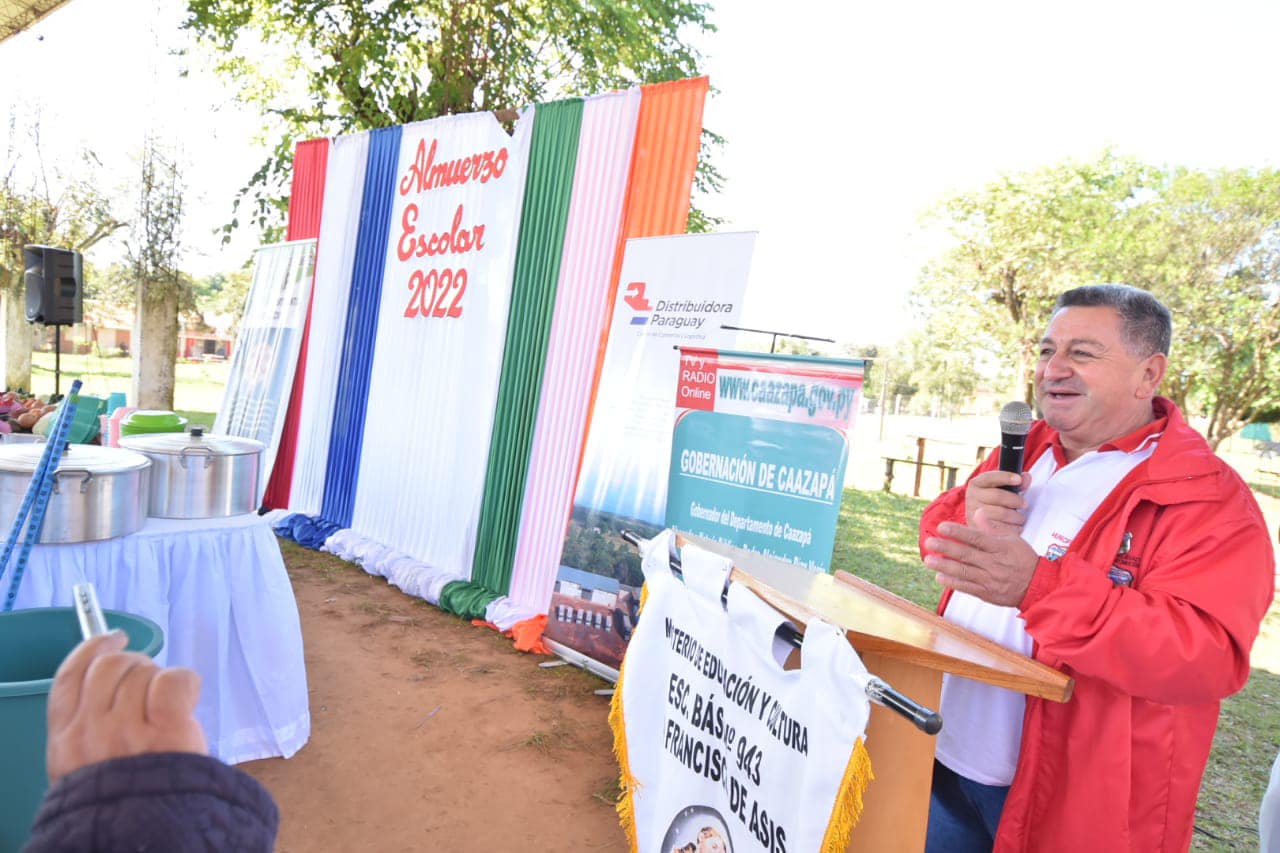 El Gobernador de Caazapá Pedro Alejandro Díaz Verón realizó la entrega y verificación de alimentos correspondientes al Almuerzo Escolar en la Escuela Básica N° 943 San Francisco de Asis.