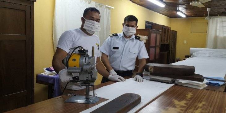 El capitán de Navío Rubén Alvarenga contó que, ante la necesidad de dotar al personal de la Armada Paraguaya de las medidas de seguridad, comenzaron a confeccionar desde este miércoles los tapabocas y también tienen proyectado hacer guardapolvos para personal de blanco de la Marina que trabaja realizando controles para evitar aglomeraciones.