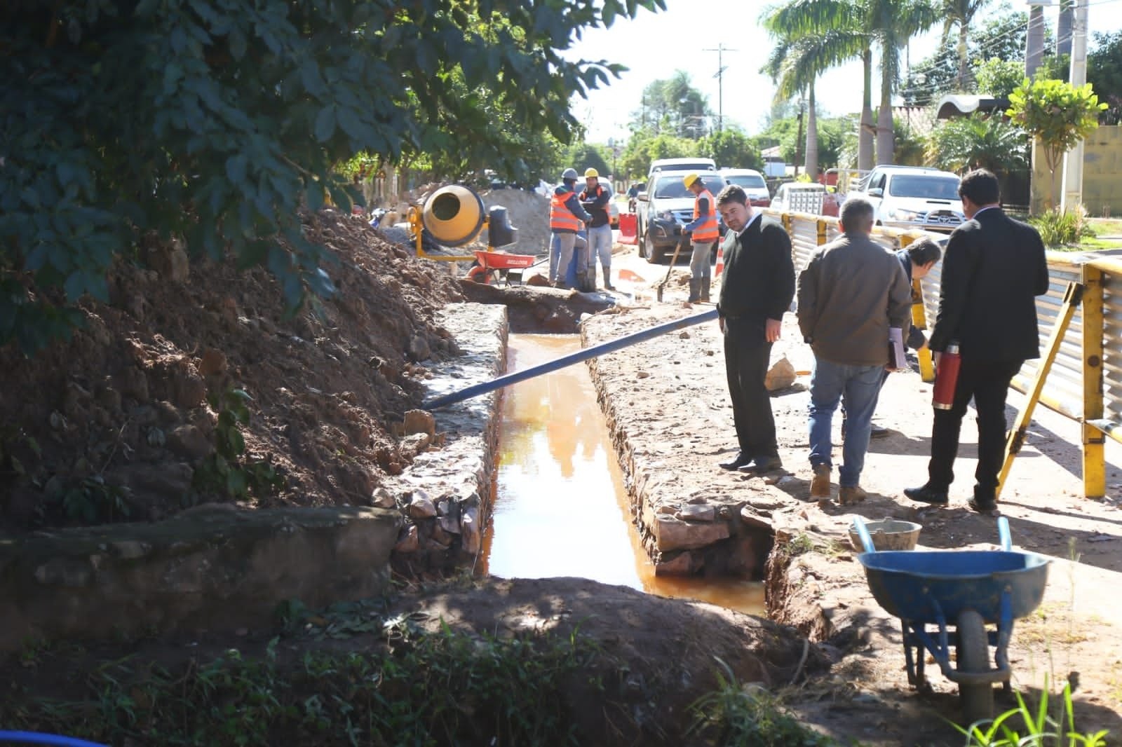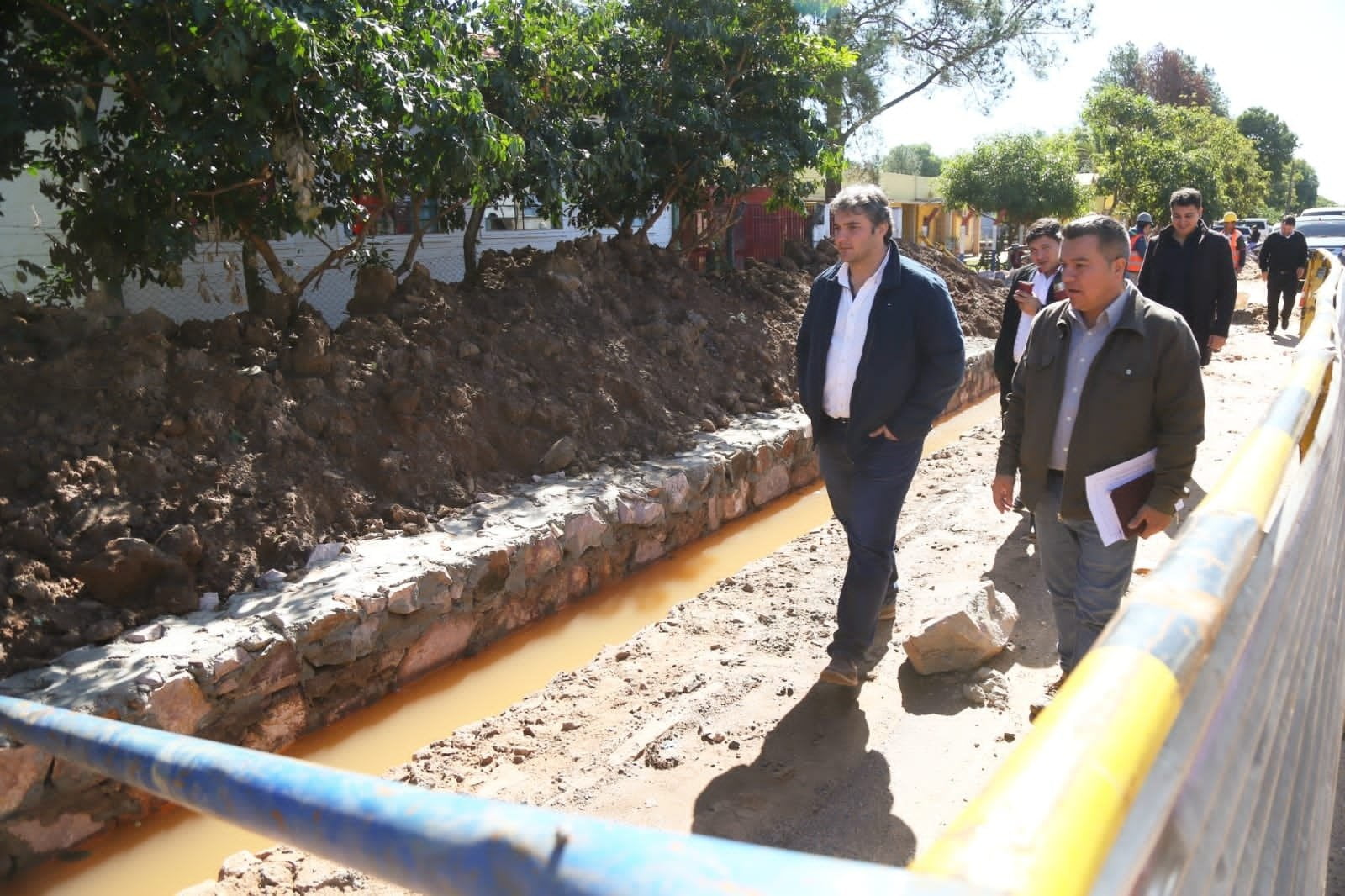 El intendente Marcos Benítez estuvo este lunes en la Escuela Repollito donde se realizan las obras de canalización para desagüe fluvial .