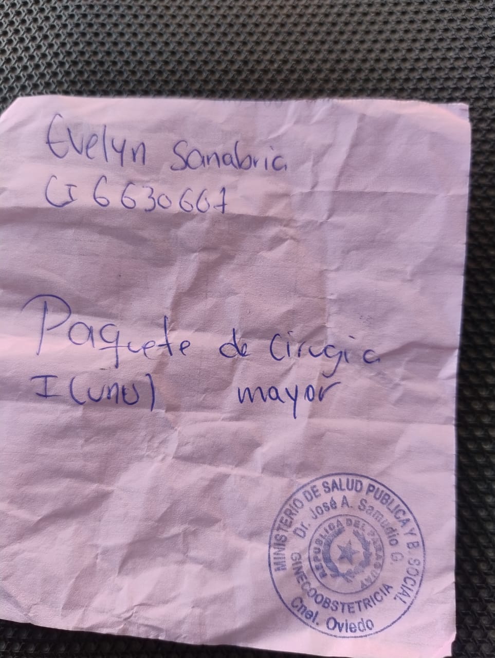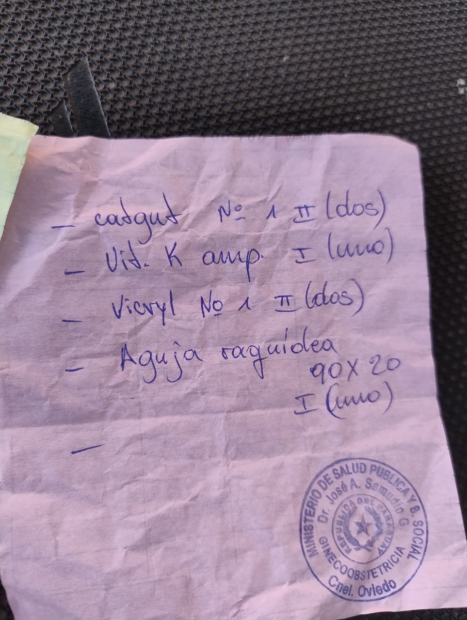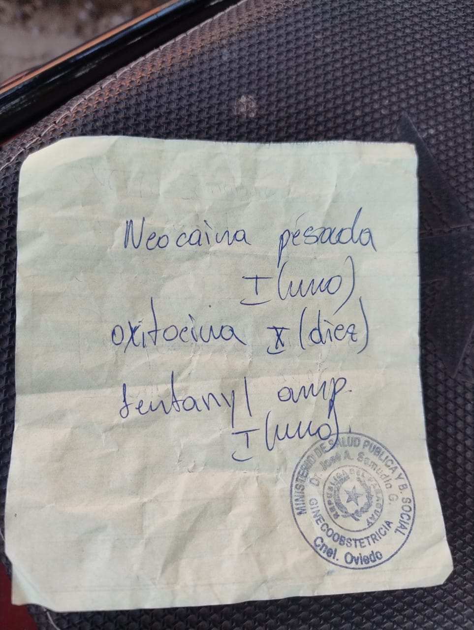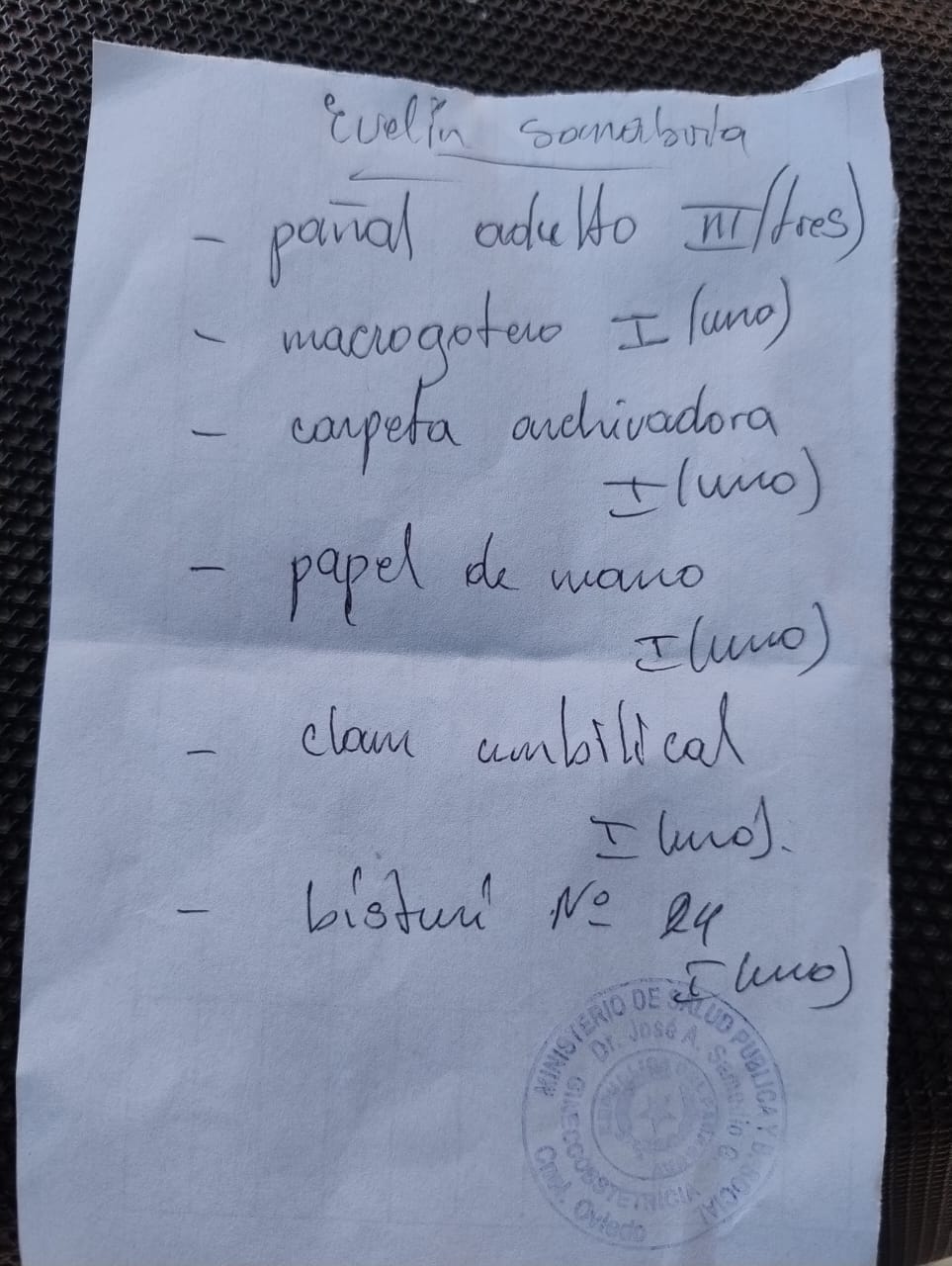 Los personales de blanco le dieron varias recetas al hombre para que compre de la farmacia porque al parecer no tenían ni una aguja, supuestamente estos insumos eran para la cesárea .