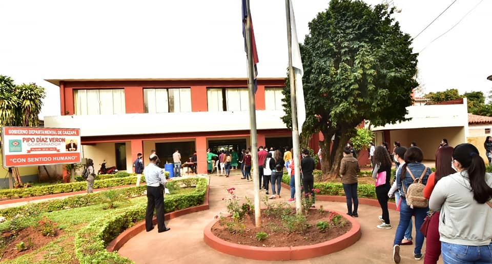 Hoy, miércoles, 9 de septiembre reciben sus cheques, jóvenes provenientes de los distritos de San Juan Nepomuceno, 3 de Mayo, Tava’i, Yuty, Aba’i y Buena Vista, bajo estrictas medidas sanitarias, cumpliendo con todos los protocolos establecidos por el Ministerio de Salud Pública y Bienestar Social, los estudiantes van acercándose a las mesas dispuestas en el local de la Gobernación, para recibir los cheques correspondientes.