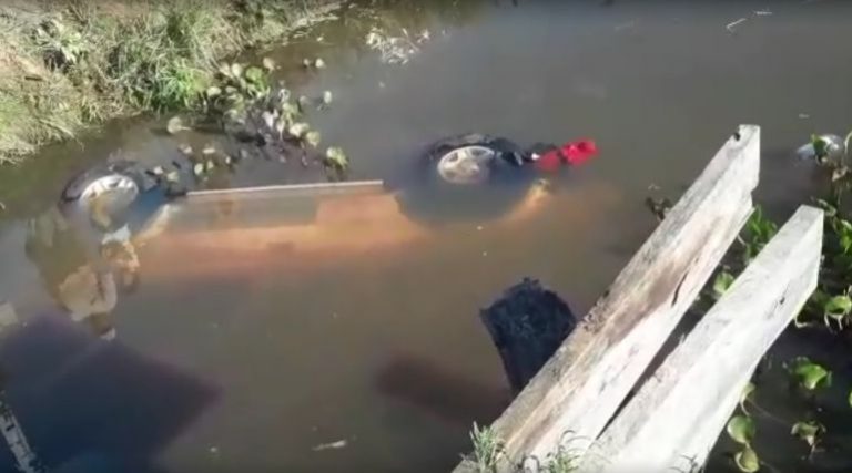 El hecho ocurrió este sábado a als 17:30 horas aproximadamente, en el camino que une Curuzu Ava con la Localidad de Cerrito, del departamento de Ñeembucú. Se trata de una camioneta blanca, de la marca Toyota, modelo Prado, que cayó en el puente Paso Tajy y quedó totalmente sumergida bajo el agua.