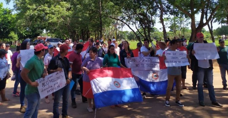Durante una manifestación de ciudadanos autoconvocados de esta localidad del departamento de Caaguazú, realizada en la mañana de hoy en la plaza del templo parroquial de donde partió la marcha hasta el local municipal de esta antíquisima comunidad caaguaceña. Solicitaron la rendición de cuentas a la administración municipal del intendente Nelson González (PLRA), desde su asunción al cargo en el año 2016 hasta el presente año. Varias pancartas expusieron los manifestantes, como ser: si que destino se le dio al aporte los G. 800 millones por parte de la entidad binacional Yacyreta, rendición de cuentas durante una audiencia pública, nunca realizada desde la asunción al cargo comunal.