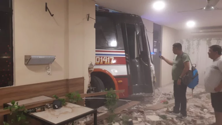 Varios pasajeros habrían resultado heridos tras el fuerte accidente, mientras que el bus terminó incrustado por la pared del local llamado Mr. TacosAfortunadamente no se registraron víctimas fatales que lamentar y algunos de los pasajeros volvieron a abordar otros buses para llegar hasta sus casas, en medio de una crisis del transporte público, regulada y el anuncio de un paro de transportistas.