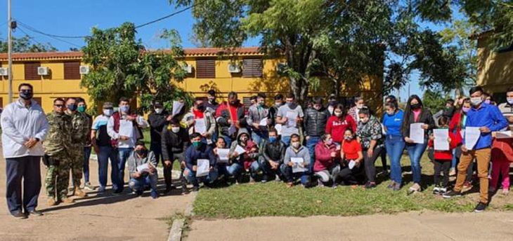 Tras 15 de días de cuarentena obligatoria, un total de 43 compatriotas, todos provenientes del Brasil, se reintegrarán a sus comunidades. Son 25 varones, 15 mujeres y tres menores de 18 años, que estuvieron en las instalaciones de G4 en la isla Yacyretá de Ayolas, recibieron sus altas y sus respectivos documentos luego de dar negativo al Covid-19.
