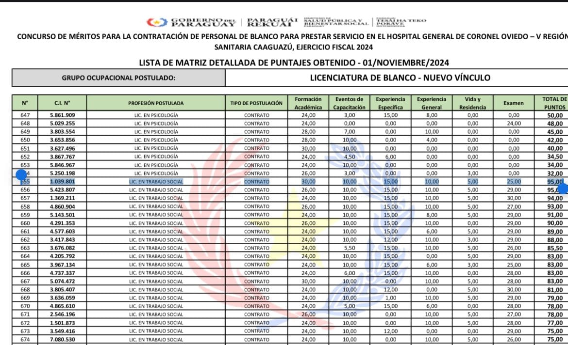 Tras la publicación de puntajes del concurso para ingresar al Hospital de Coronel Oviedo salieron a la luz varias denuncias de presuntas irregularidades.