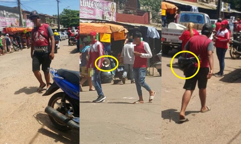 Las imágenes enviadas a nuestro medio muestran a menores de entre 13 a 15 años vendiendo las rifas por las calles con parlantes por la espalda exponiéndose a todo tipo de peligros y bajo el calor infernal del sol.