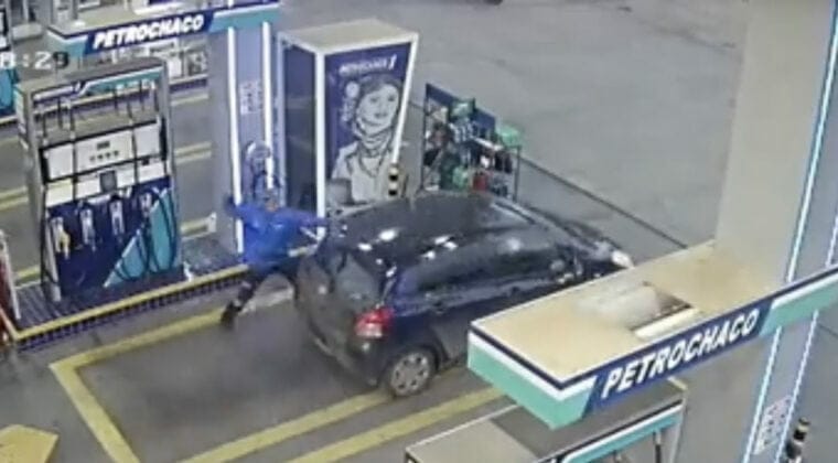 El playero Diego Coronel, al percatarse de la huida, reventó el parabrisas trasero del vehículo con un balín de hierro que preparó exclusivamente para estos casos, ya que según manifestó, no es la primera vez que le ocurre y que en ocasiones anteriores, el importe le fue descontado de su salario.