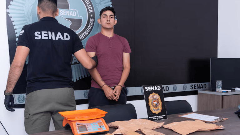 El ahora detenido fue identificado como Kevin Rafael Martínez, de 20 años, oriundo de Salto del Guairá. El joven fue detenido e inspeccionado luego de pasar el escáner, donde se pudo observar en las imágenes varios bultos en su cuerpo.