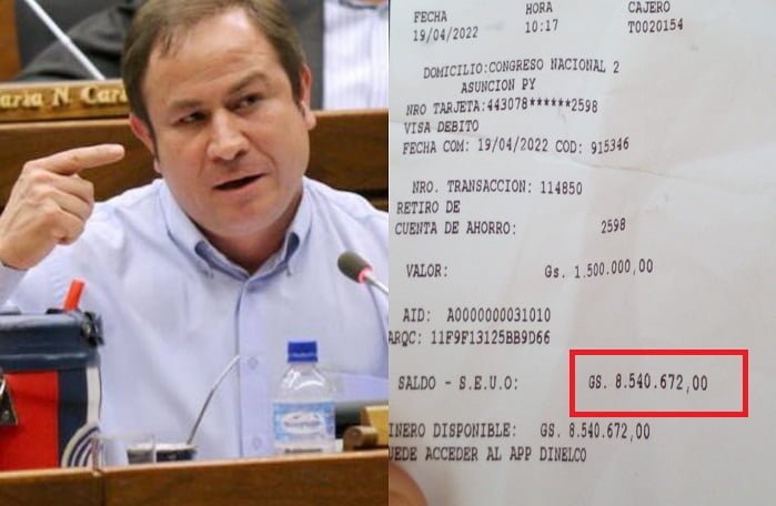 “Estamos un poco más de la quincena de mes, 19 de abril, saqué un millón y medio’ i porque de esto vivo y son 8 millones lo que me sobra, no tengo vergüenza ni miedo porque esa es mi realidad”, expresó el diputado liberal Eusebio Alvarenga, en entrevista con radio Uno.
