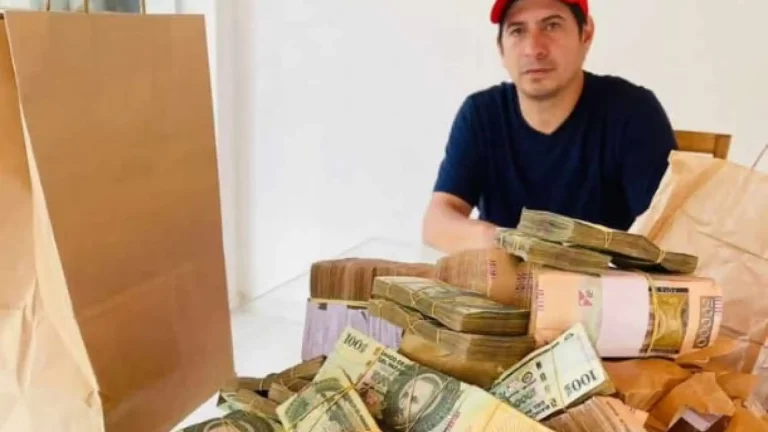 En este marco, el seccionalero sapuqueño subió una foto a su estado de WhatsApp el último sábado, exhibiendo varios fajos de dinero apilados sobre una mesa, junto a un bolso de cartón y una persona al fondo, que no es la misma que realizó la publicación. Es un funcionario de la Cancillería Nacional.