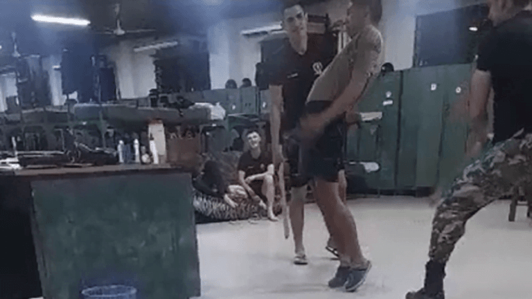 El video de lo sucedido se conoció este domingo y en las imágenes se los ve golpeando con tablas de madera a los militares de rangos inferiores, quienes no tuvieron otra que obedecer y someterse a la tortura.
