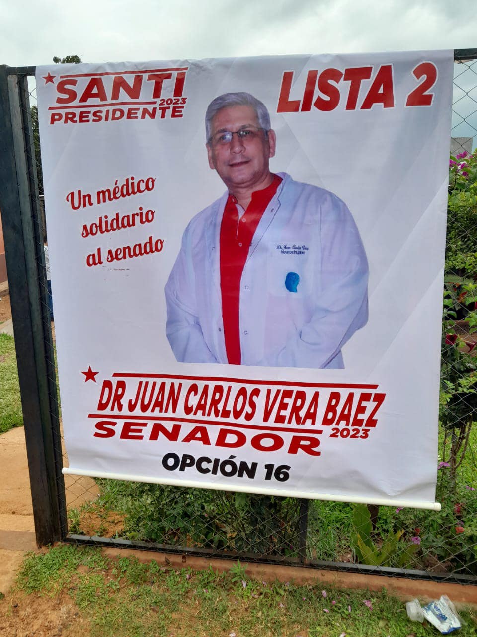 El candidato a Senador por Honor Colorado Dr. Juan Carlos Vera con el móvil de salud brindó atención médica sin costo en el Asentamiento San Luis de la ciudad de Coronel Oviedo.