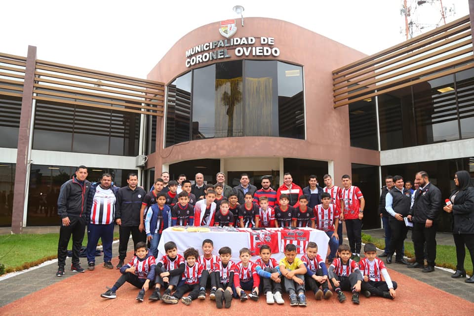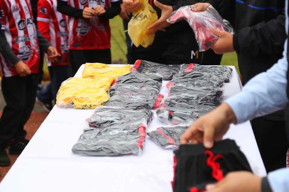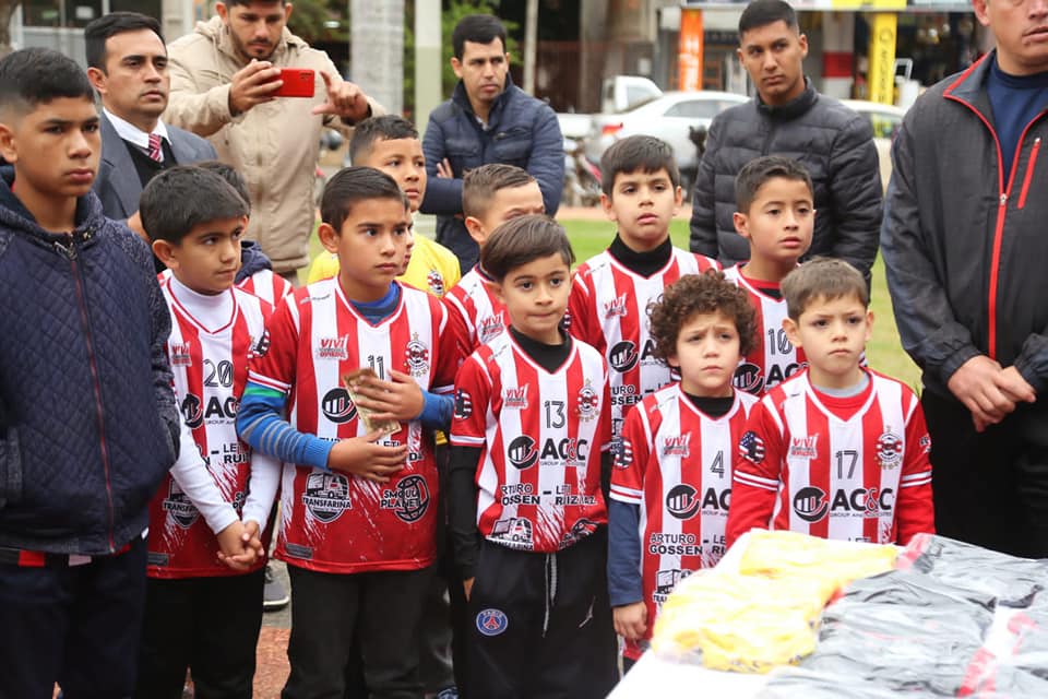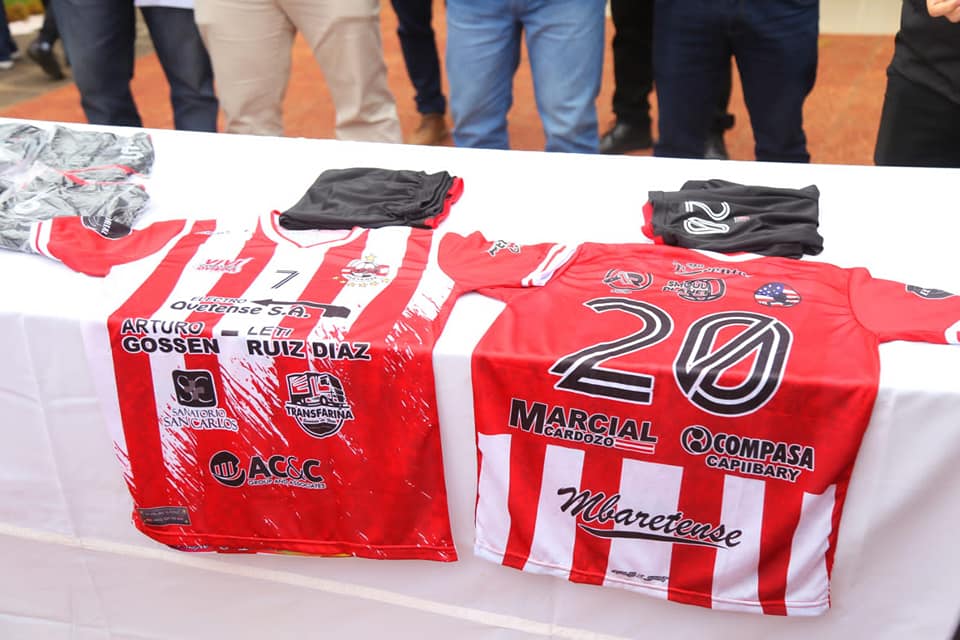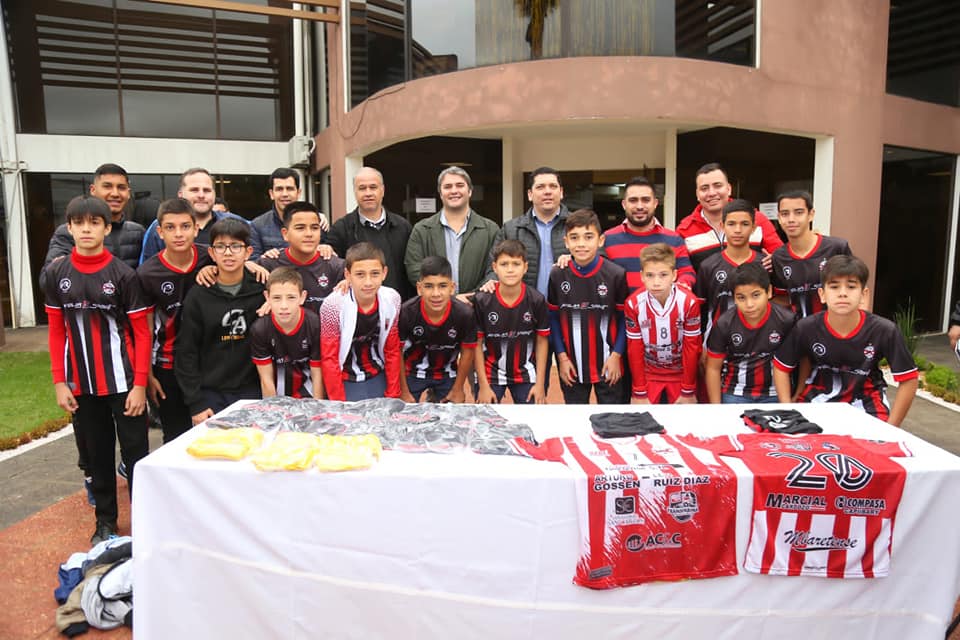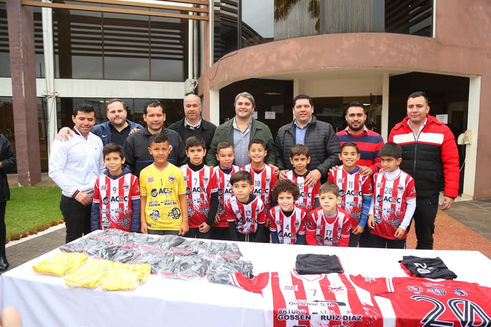 Esta mañana el Intendente Marcos Benítez realizó la entrega de Atuendos Deportivos a integrantes de la Asociación Ovetense de Fútbol de Salón C9, C13 y C17.