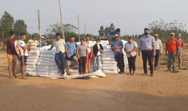 En el Distrito de Yhú, el Gobierno Departamental de Caaguazú bajo administración de Don Alejo Ríos hizo entrega de 640 bolsas de Cal Agrícola dolomítica al comité de productores «9 de mayo» del Asentamiento Tekopyahu, beneficiando así a 45 socios de la zona.