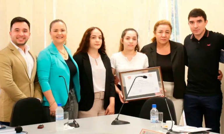 En la mañana de este lunes concejales municipales durante la sesión ordinaria entregaron un reconocimiento a la familia del docente fallecido Óscar Coronel Romero.