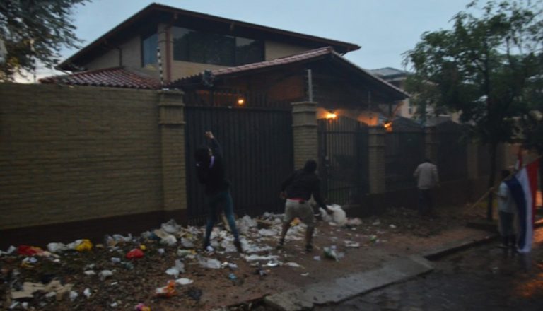 Un grupo de manifestantes llegó en la tarde-noche del viernes hasta la casa del juez Amilcar Marecos para escracharlo luego de haber prohibido las manifestaciones contra los jueces que liberaron al ex policía condenado a 10 años de cárcel por abuso sexual en un menor.