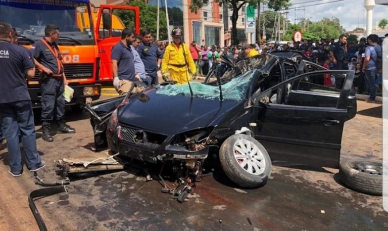 Un automóvil que circulaba a gran velocidad perdió el control, impactó por un árbol y terminó volcando. El hecho ocurrió hace minutos en el Km. 1,5 de Ciudad del Este sobre la ruta 02. Uno de los ocupantes perdió la vida.