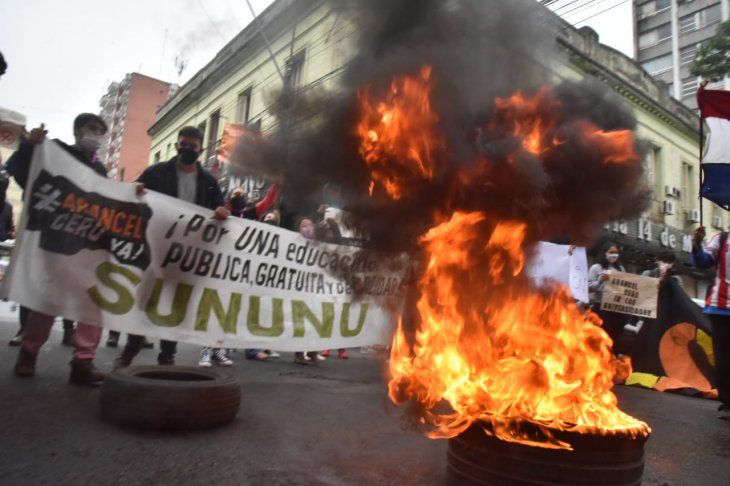 Posteriormente, procedieron a cerrar calles en el microcentro de Asunción y empezaron a quemar cubiertas. En ese