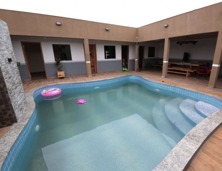 El celeste claro que refleja el agua de una piscina ubicada en el centro del patio, rodeada de una edificación con amplios ventanales de blindex, se muestra imponente ante los ojos incrédulos del equipo de fiscalas que llegó hasta la vivienda de Arnaldo Matías Báez, quien fuera jefe de seguridad de la Penitenciaría Regional de Pedro Juan Caballero.