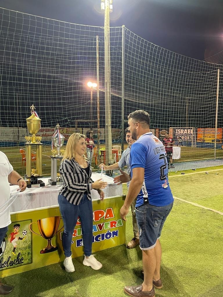 El viernes el Concejal Municipal de Coronel Oviedo Armando Riveros y la Candidata a Concejal Departamental por la Concertación Lilian de Riveros, estuvieron como invitados especiales en el Torneo Empresarial De Juan Eulogio Estigarribia (campo 9) dónde se disputó la final de la 7ma Edición de la Copa Primavera.
