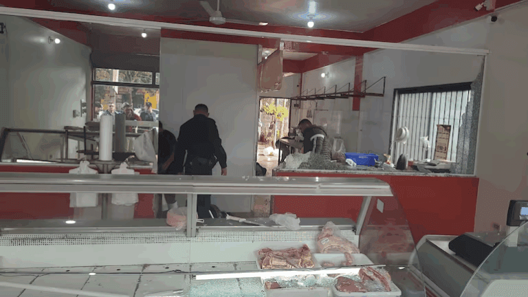 Según los datos, dos hombres armados llegaron ayer a la carnicería, poco antes del mediodía, a bordo de una motocicleta de color oscuro con intenciones de robar la recaudación del día. Sin embargo, el propietario del negocio se resistió y se enfrentó a tiros con los delincuentes.
