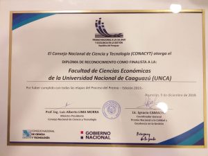 El Decano de la Facultad de Ciencias Económicas UNCA , Lic. Miguel Vera en representación de la institución recibió el reconocimiento como finalista del Premio Nacional a la Calidad y Excelencia en la Gestión.
