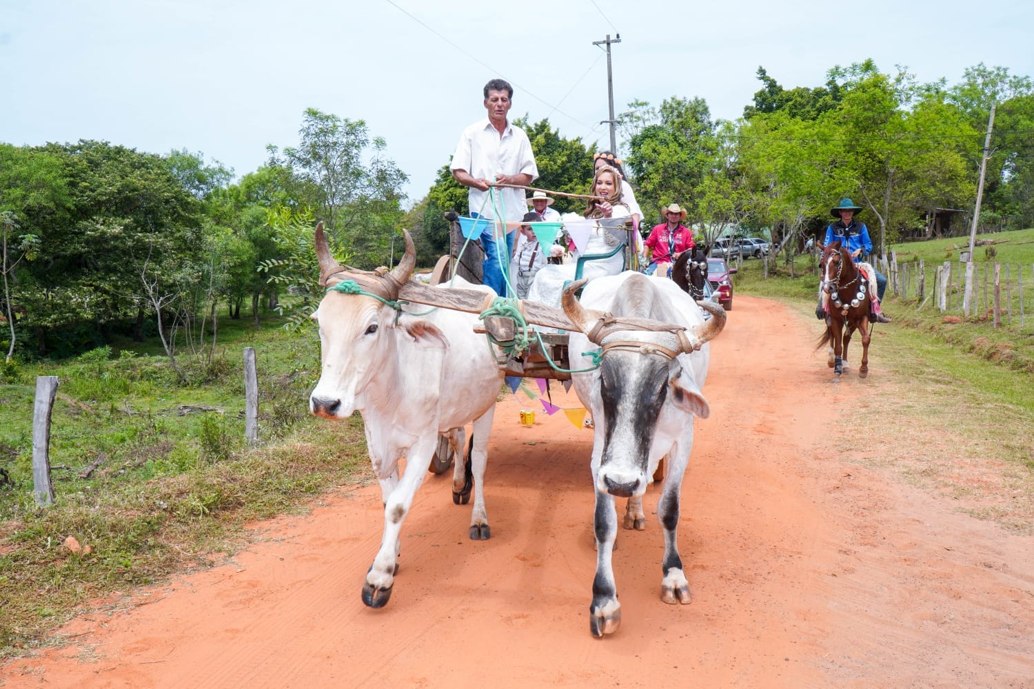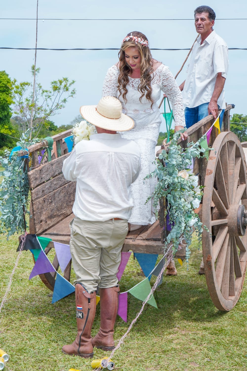 Los esposos llegaron en una carreta con bueyes, perfectamente ornamentada para la ocasión, escoltados por jinetes, debido que José Miguel es parte de la Asociación de caballería de su comunidad. José Miguel es de profesión electricista de automóvil y Carmen Mercedes es docente, desempeñándose como catedrática en los colegios secundarios del distrito sanjosiano en la rama de Historia.