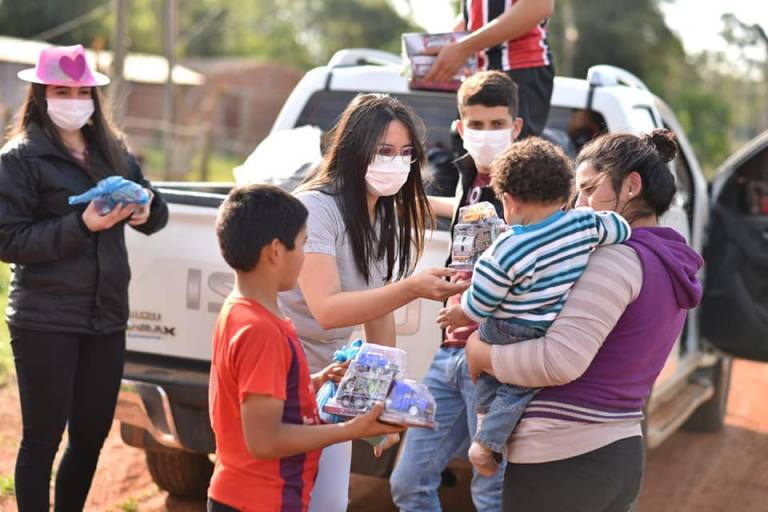 El domingo gracias al Gobernador Abg Pedro Alejandro Díaz Verón, llevaron alegría y dulzura a más de 400 niños del Asentamiento Roque Sarubbi y Barrio San Pedro, así también apoyamos la organización para el día de niño en la comunidad de Tajy’i y a la Pastoral de la Juventud de la Parroquia San Marcos del Distrito de Maciel.