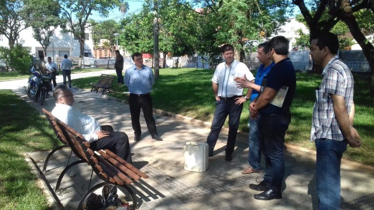 El Gobernador del Departamento de Caaguazú Alejo Ríos en compañía del Secretario de obras Arq Víctor Mendieta realizaron la verificación de obras en la plaza de los Héroes de Coronel Oviedo.