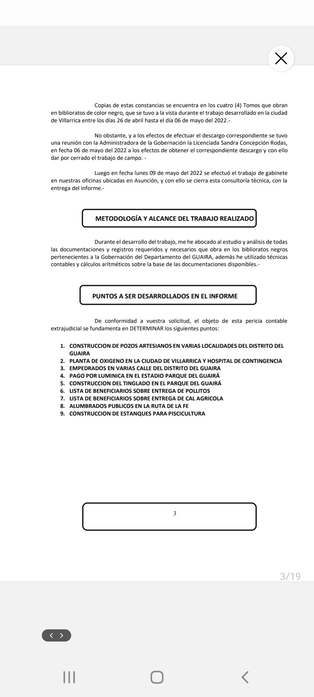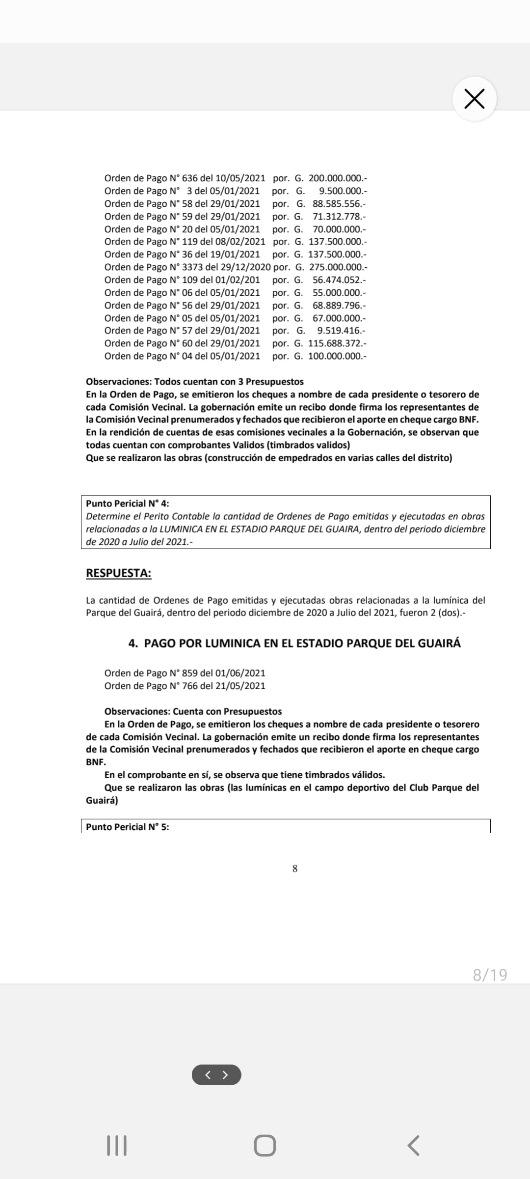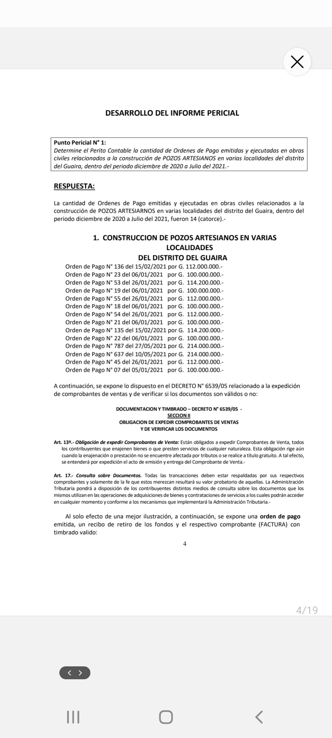 Explicó que un perito matriculado por el Ministerio de Justicia realizó una pericia contable de todos los puntos que fueron denunciados por el Ministro de Tributación y este determino que no hay daño patrimonial que todos los puntos objetados por el viceministro de tributación fueron solo faltas administrativas y que esto no constituye un delito .