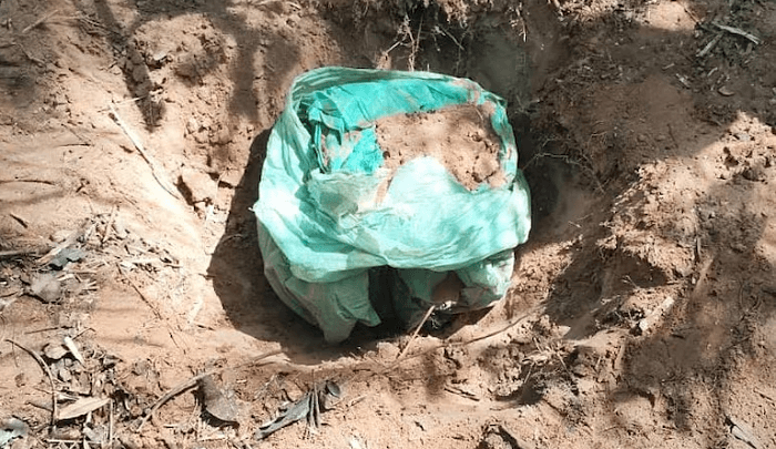 En la “caleta” se encontraron bolsas de basura que contenían documentos, armas y municiones. Se convocó a especialistas de Criminalística para el análisis de todos los elementos. humanos.