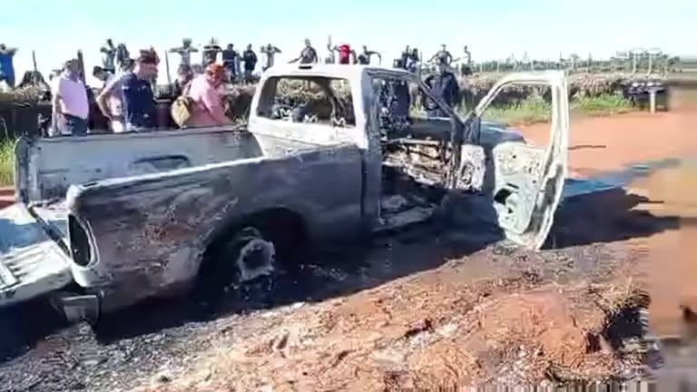 Efectivos policiales encontraron una camioneta incendiada con un cadáver calcinado. Se presume que la persona fue asesinada balazos y que, posteriormente quemaron el vehículo con la víctima.El caso se reportó en una zona despoblada de Naranjaty, a unos 5 Km del casco urbano de Curuguaty.