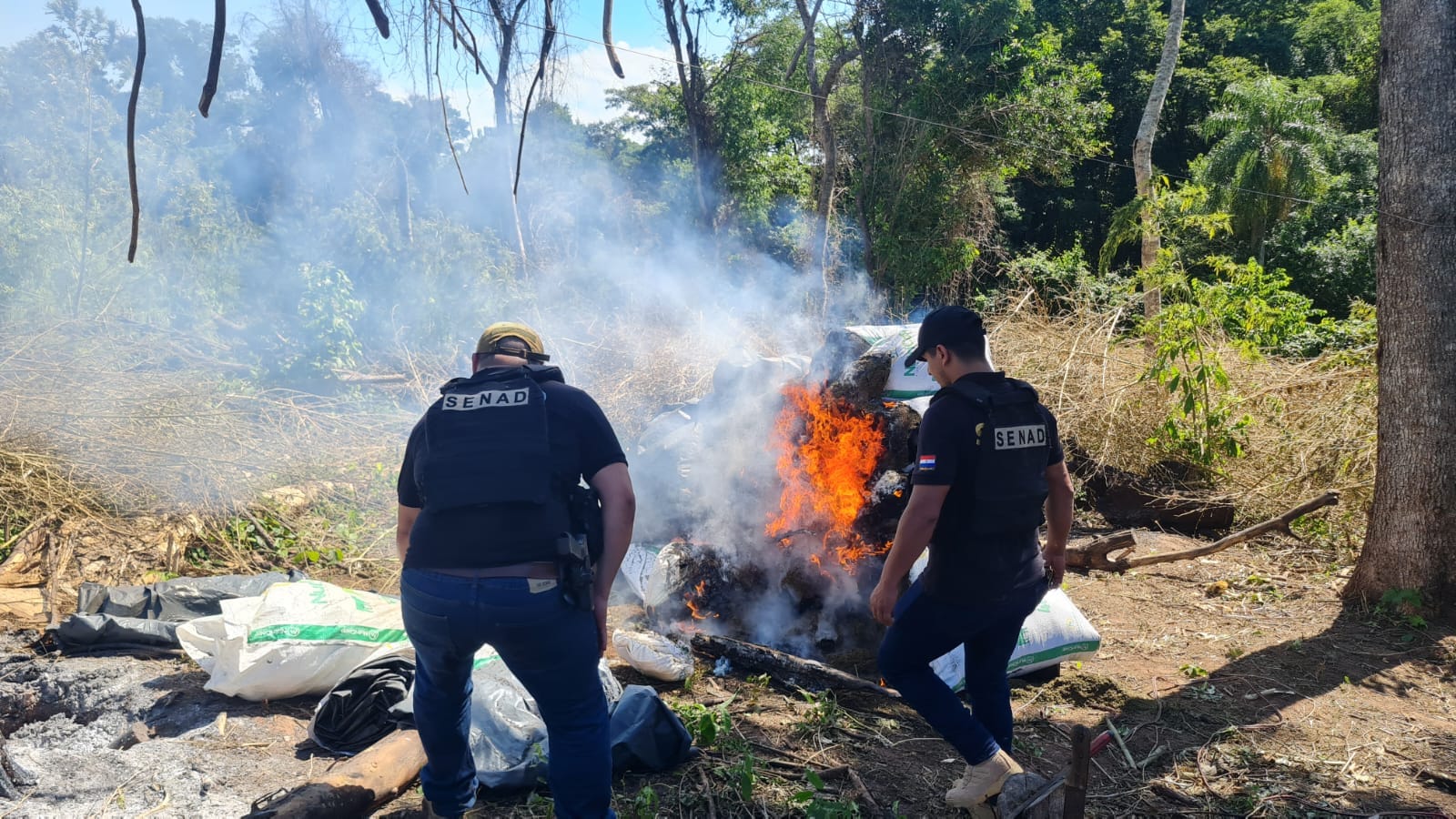 Fueron destruidos 500 kg de supuesta marihuana picada distribuidos en 25 bolsas arpilleras y una parcela de dos hectáreas de plantación de supuesta marihuana en etapa de cosecha.