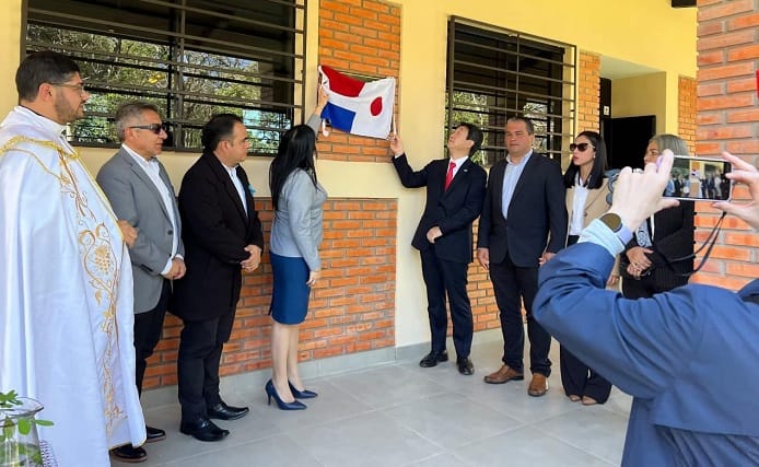 SAN JOSÉ DE LOS ARROYOS, Dpto. Caaguazu. – Con la presencia del embajador nipón en nuestro país; Katsumi Itagaki, quedó inaugurado y habilitado oficialmente el nuevo pabellón que consta de tres aulas climatizadas, con el correspondiente mobiliario, para el desarrollo de las clases, que los estudiantes usufructurán de hoy en más. El convenio fue firmado el 25 de octubre del año 2024, en la legación nipona con sede en Asunción del Paraguay, a través de la entonces Embajadora, Sra. Nakatani Otsuka Yoshie , y la Directora Mgter. Cristina Noemí Britez Aguilar.