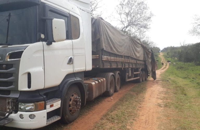 Incautan camión cargado de postes de madera en una compañía de R.I 3 Corrales
