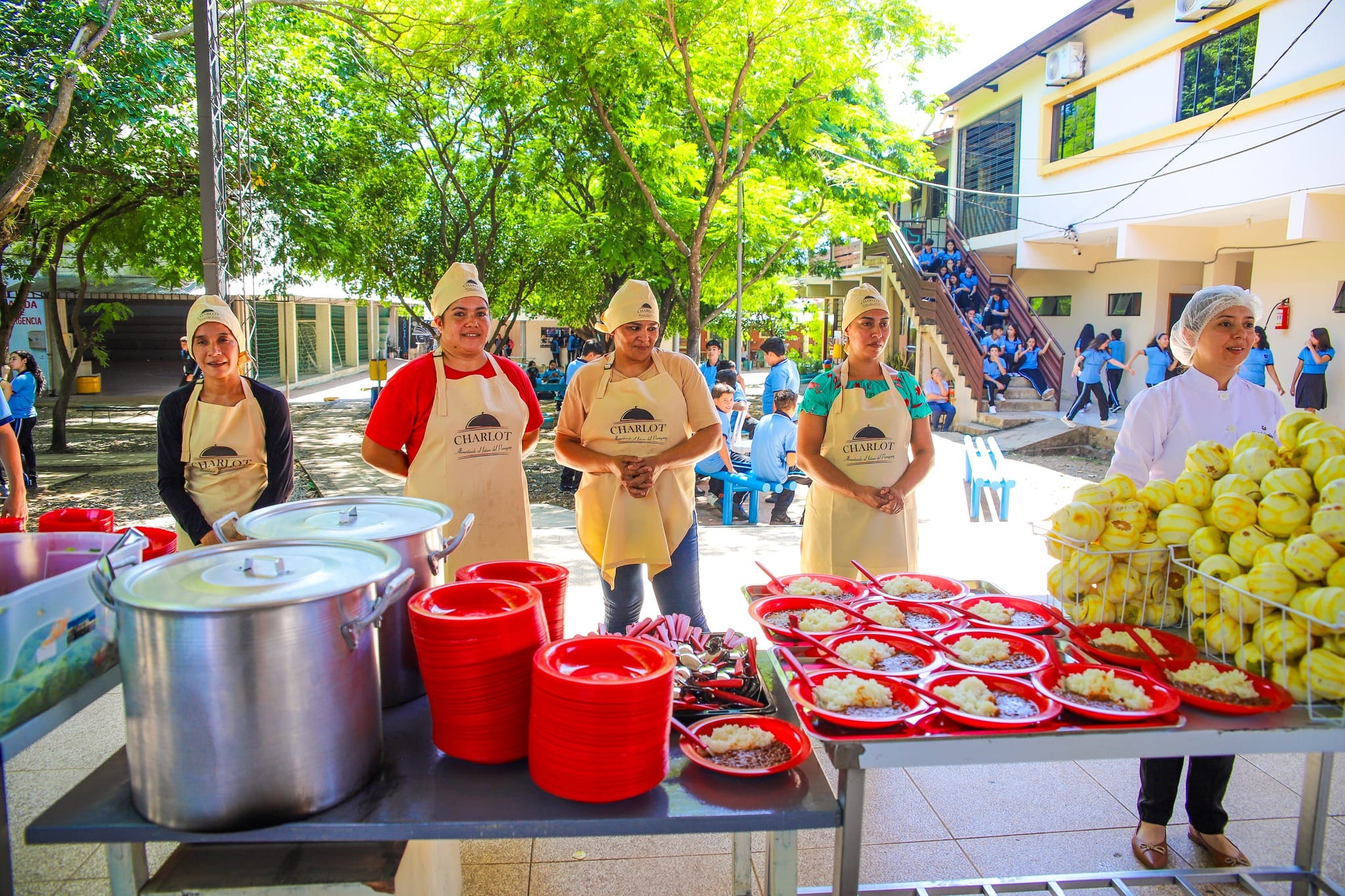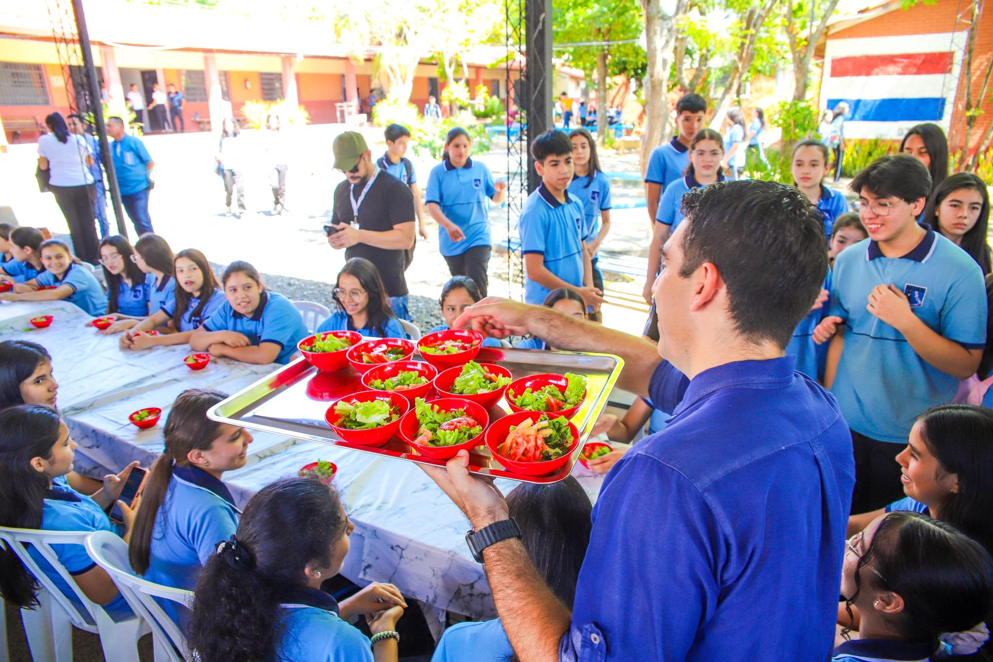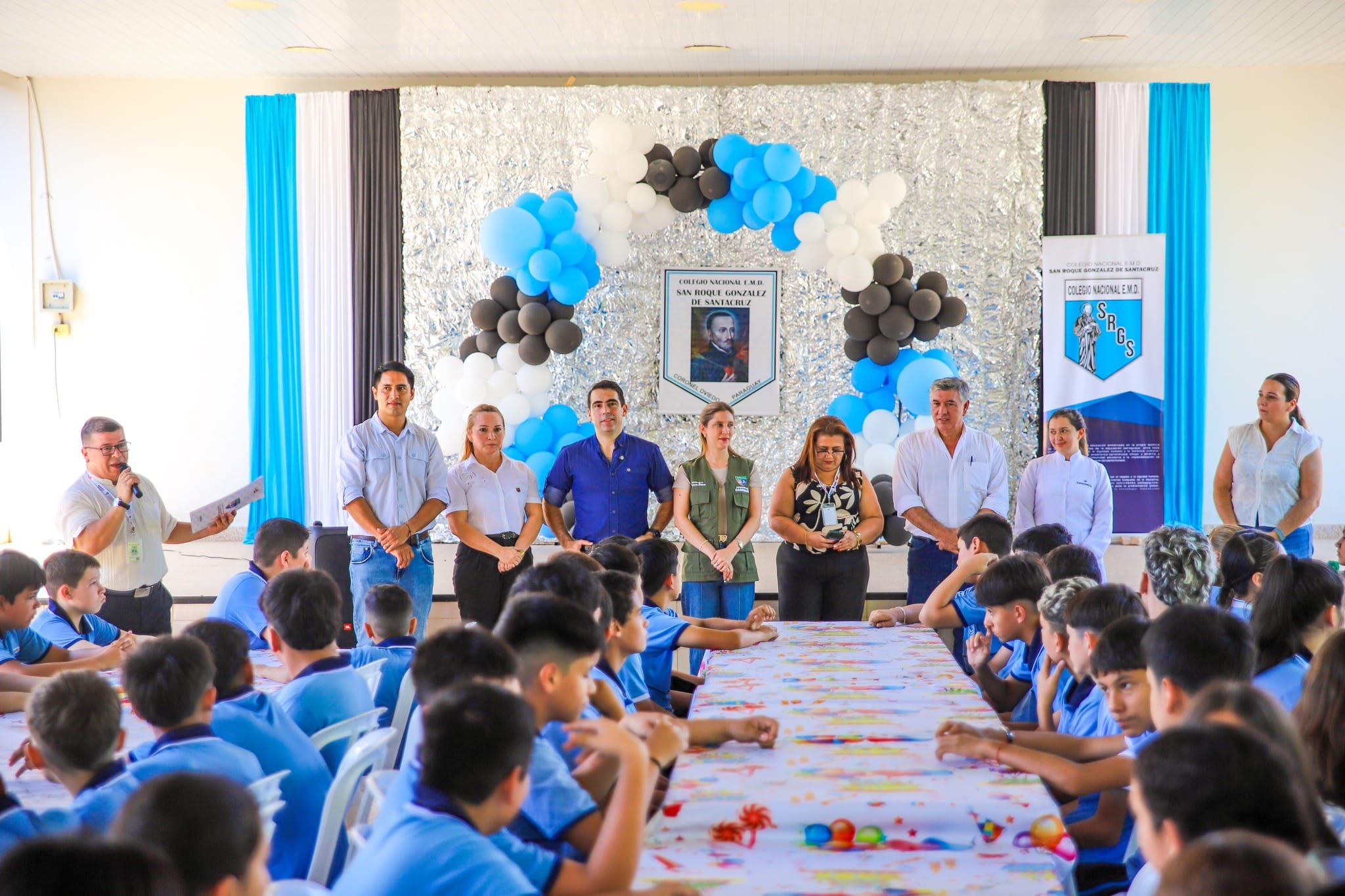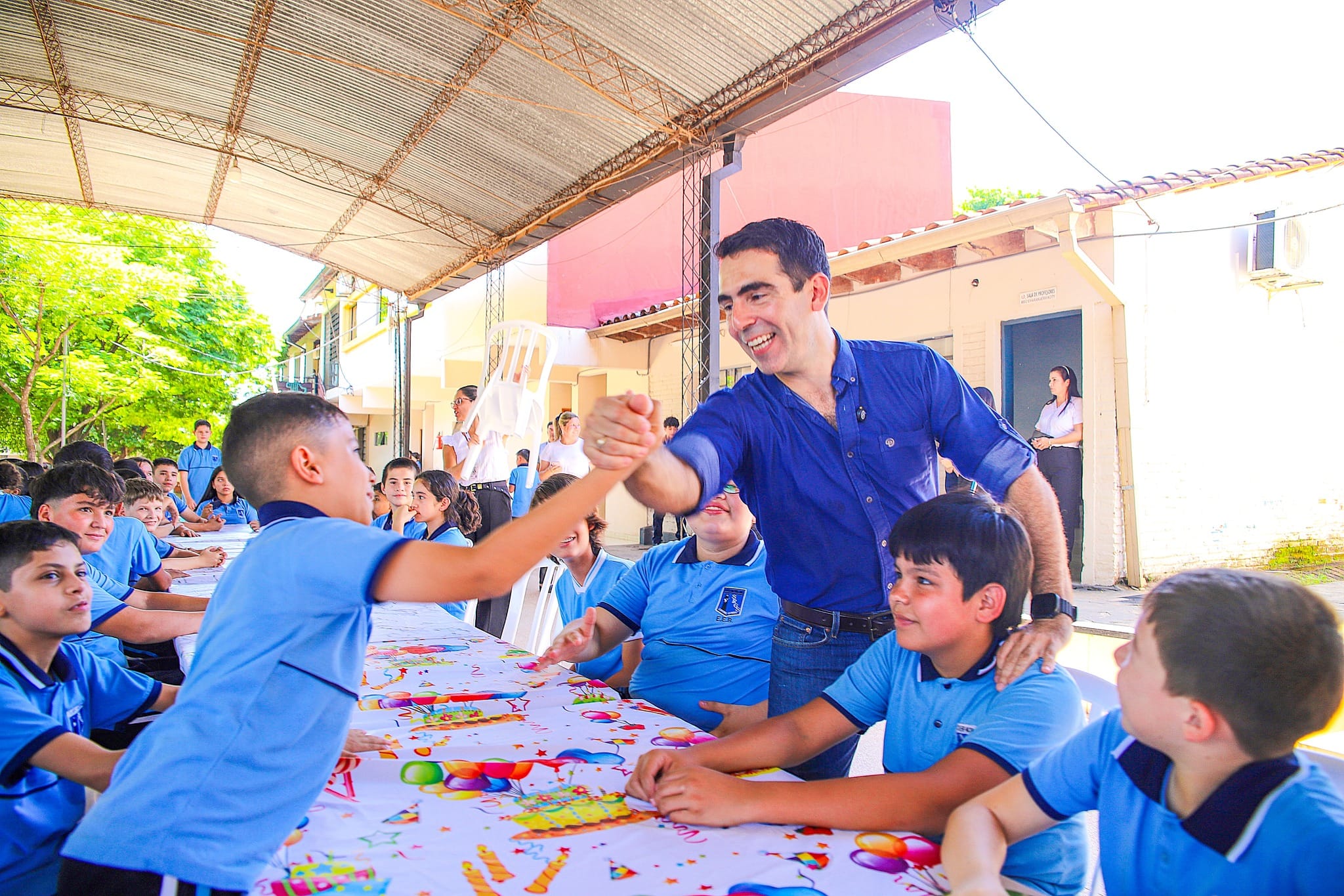 Ayer en el Colegio San Roque González de Santa Cruz de Coronel Oviedo, el Gobernador Marcelo Soto y la Primera Dama Departamental Laura Samudio compartieron un almuerzo con los alumnos.