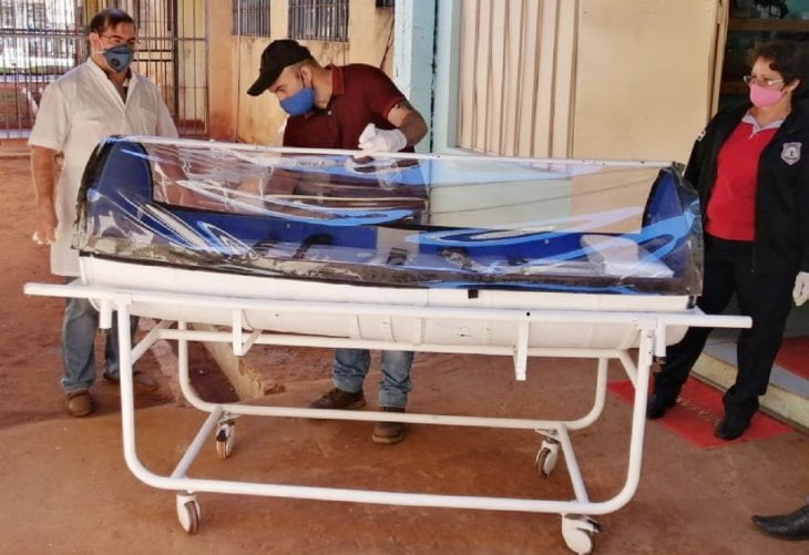 A fin de que los pacientes con diagnóstico de Covid-19 sean llevados de manera segura a los hospitales, las personas privadas de libertad de la Penitenciaría Regional de Pedro Juan Caballero fabricaron la cápsula, que está preparada para que luego de cada uso pueda ser debidamente desinfectada.