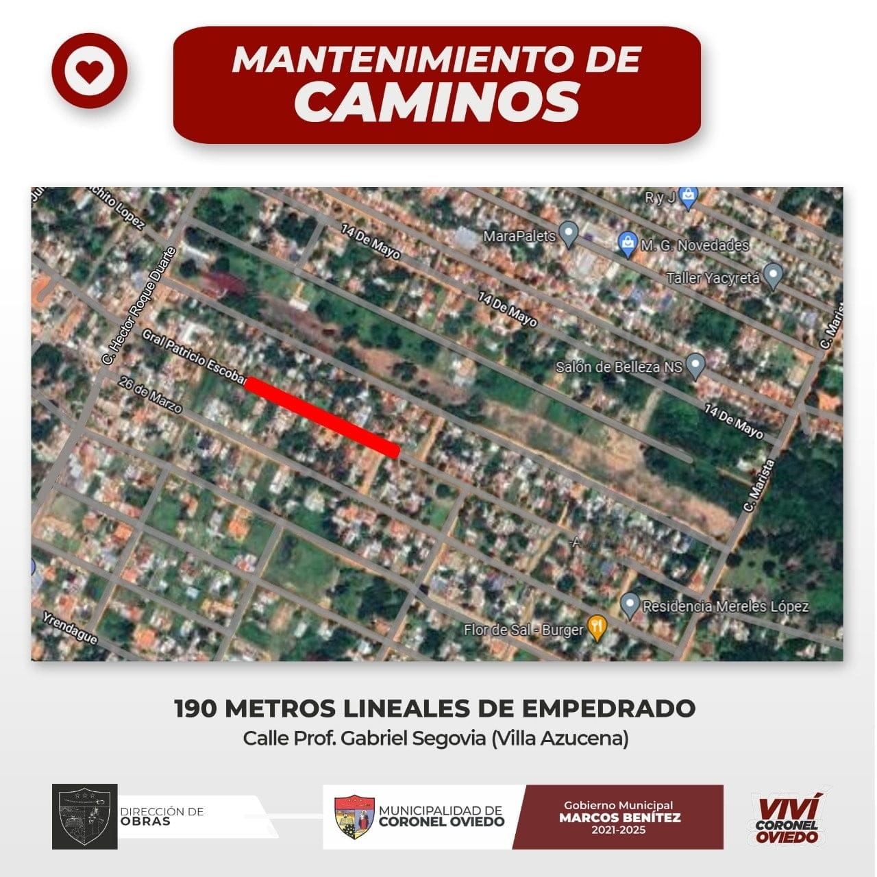 La inversión de Gs 161.778.000 termina de unir la calle Héctor Roque Duarte con la calle Maristas, otorgando así otro tramo de todo tiempo uniendo los barrios de la zona este de la ciudad con los barrios Azucena y 12 de Junio,