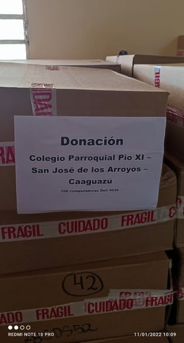SAN JOSÉ DE LOS ARROYOS, Dpto. Caaguazú.- El Colegio Parroquial Pío XI, de la ciudad de San José de los Arroyos, departamento de Caaguazú, recibió en carácter donación de la Itaipu Binacional importante lote de computadoras, que en base al formato es de última gama, de la marca DELL, Tipo All in One, (Todo en uno). Esto gracias a la gestión de la directora de la institución educativa; la Lic. Cristina Noemí Britez Aguilar, en forma conjunta con las escribanas Blanca Maria y Ana Manuela González Ramos, oriundas de esta comunidad caaguaceña.