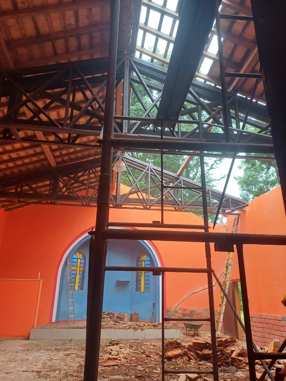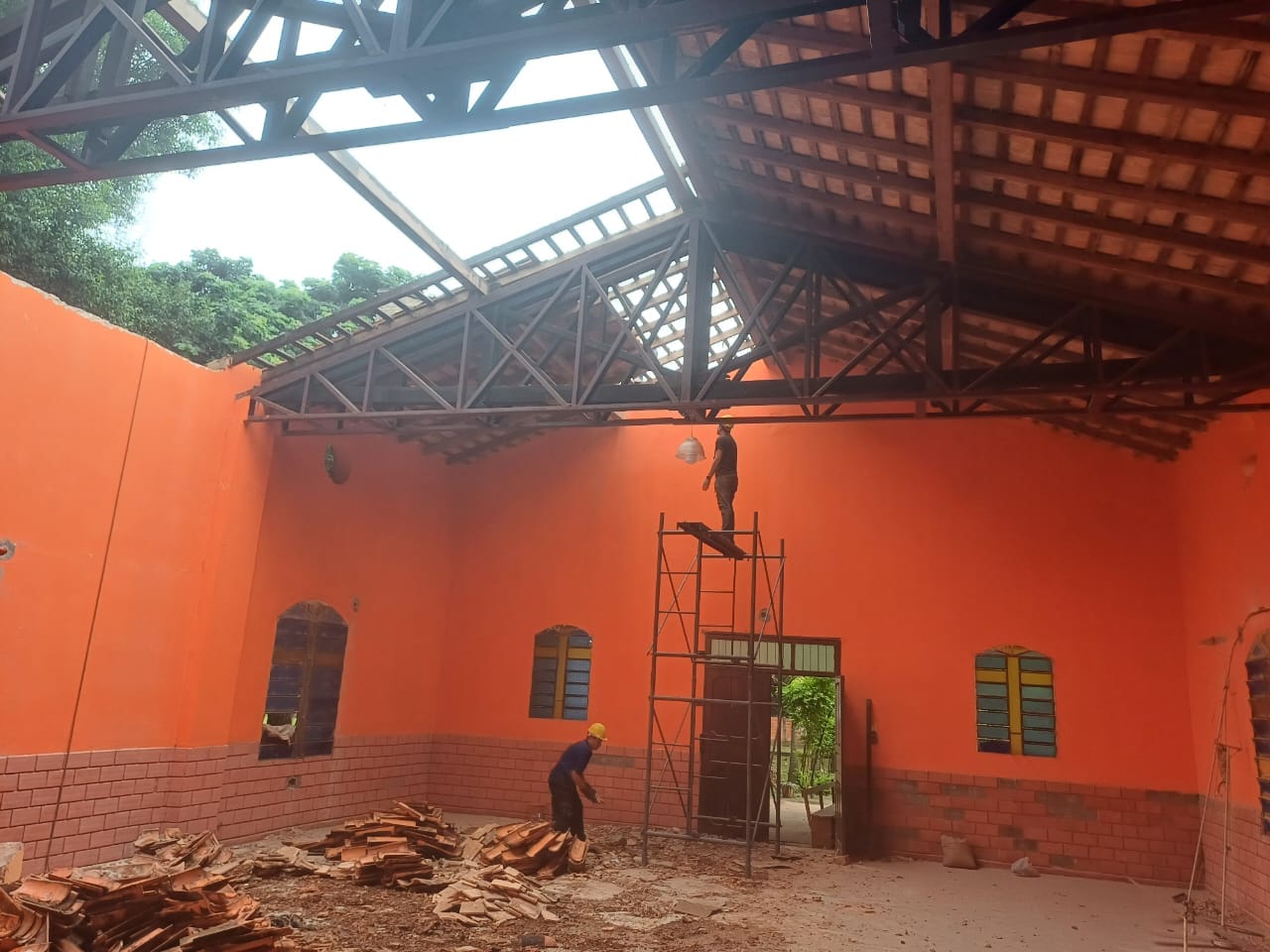 SAN JOSÉ DE LOS ARROYOS, Dpto. Caaguazú.- Gestión mediante de los miembros de esta comunidad rural del distrito sanjosiano, ante la instancia de la Itaipu BI Nacional, ente que en el marco de la responsabilidad social, están iniciado los trabajos mejoras, específicamente en la parte del techado del templo erigido a Cristo Rey, patrono de los arazapeños. La comunidad por este manifiesto, están alegres y contentos quienes venían aguardando el inicio de los trabajos mejoramientos por el templo del lugar, quienes indicaron que el padre espiritual de los arazapeños, está haciendo milagro con estas manifestaciones.