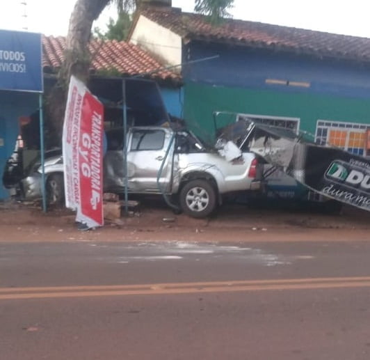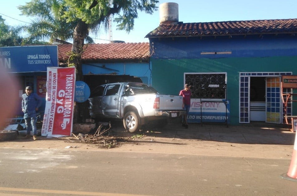 En base al reporte, el rodado colisionó por  un Automóvil, Toyota Corolla Runx, color plata, que se encontraba en la banquina,lado Sur,  con dirección Este, propiedad de Hugo Edilio Ramírez Montanía (25). Posterior a la misma, la camioneta Hilux,  embistió contra el toldo del local comercial ubicado en el lugar,  denominado “Repuestos Aldo Motos», además por otro local Comercial de nombre «Ventas de Celulares y Fotocopias GABILAN». Este local quedó con cuantiosos daños materiales.