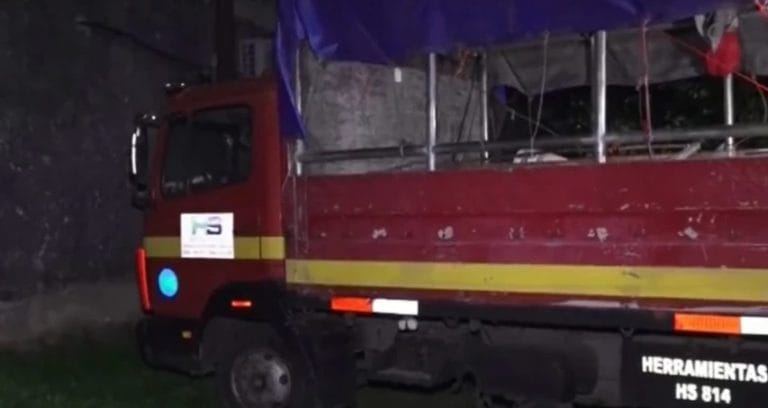 El trabajador se trasladaba en el camión que transportaba hierros y carteles y que está al servicio del Ministerio de Obras Públicas y Comunicaciones (MOPC), según la cartelería que porta.