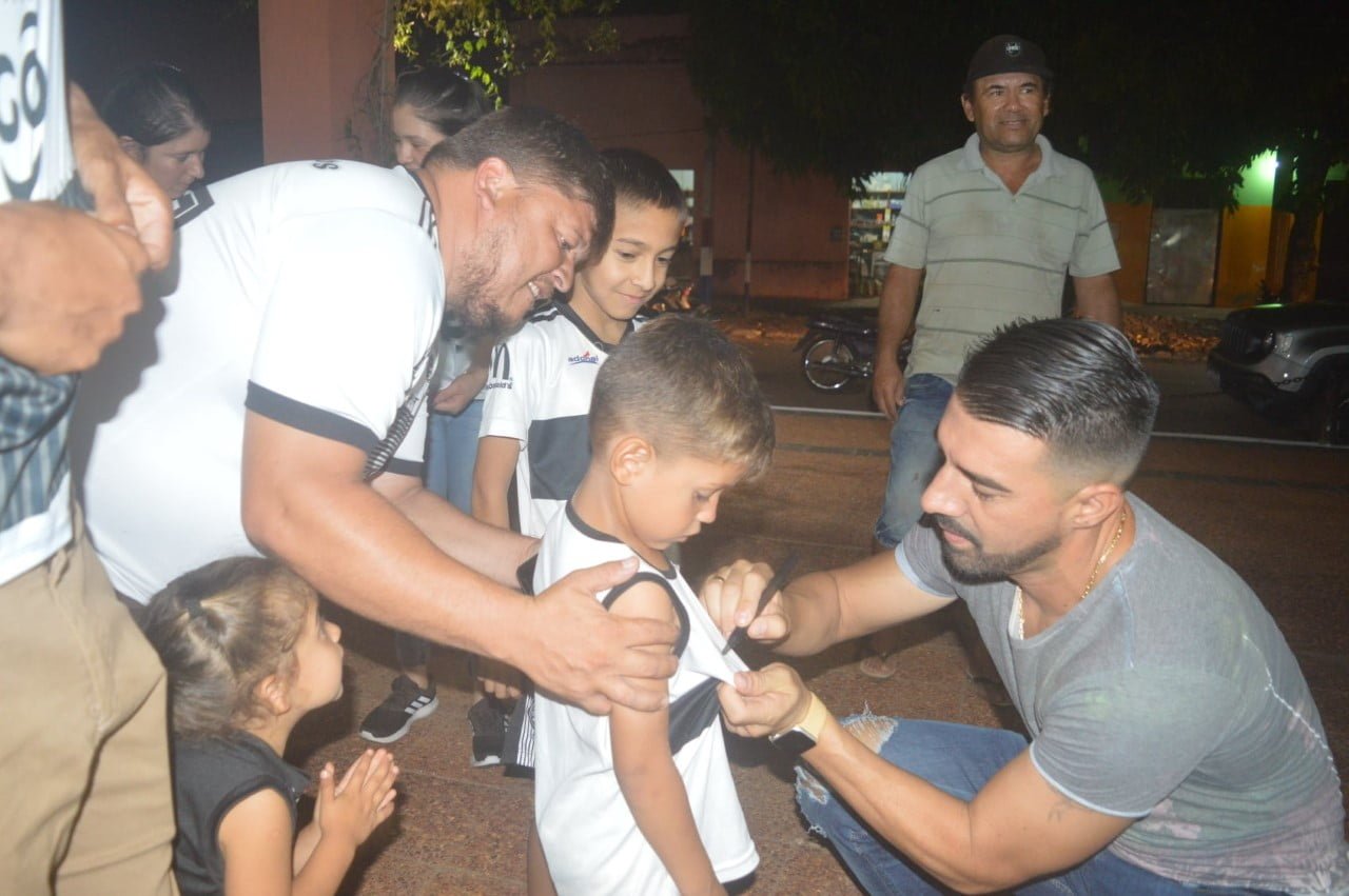 Posteriormente hizo un paro en la plaza 14 de Mayo, para las firmas de autógrafos correspondientes a las gentes que se agolparon hasta el referido lugar, quienes además aprovecharon la ocasión las tomas fotográficas correspondientes, para testimoniarles sus aprecios y gratitud por los logros alcanzados como jugador profesional, y hoy día con mucho acierto en su condición de Director Técnico (DT) del decano del Fútbol paraguayo; el Olimpia de la Asociación Paraguaya de Fútbol (APF).
