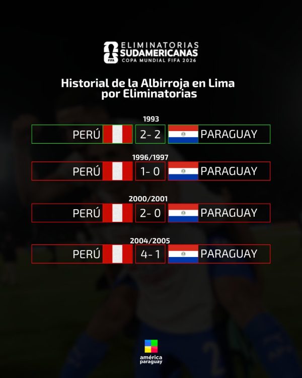 Los números son contundentes. En ocho presentaciones en suelo peruano, Paraguay se fue con seis derrotas y apenas dos empates. El último punto conseguido en Lima se remonta a la apertura de las clasificatorias rumbo a Sudáfrica 2010, cuando el conjunto incaico acabó último en la tabla. Desde entonces, Perú convirtió su estadio en una fortaleza, sumando tres triunfos consecutivos en casa ante la Albirroja.
