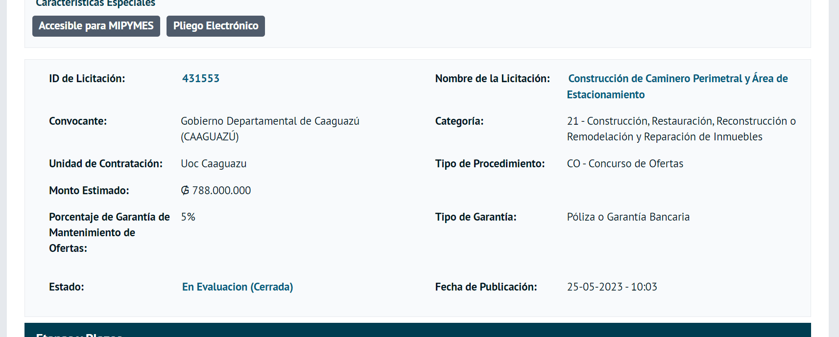 Según el portal de contrataciones públicas con ID 431553 el monto es de 788.000.000 millones.