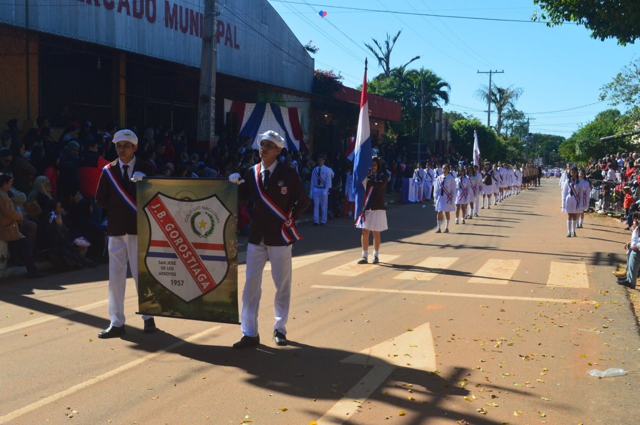 SAN JOSÉ DE LOS ARROYOS, Dpto. Caaguazú.- Lucido desfile cívico estudiantil, se realizó en la mañana de hoy lunes sobre la avenida Carlos Antonio López de esta ciudad por los 211 aniversarios de vida independiente de la República del Paraguay. El pasado sábado 14 de mayo debía realizarse el paso gallardo de los estudiantes, pero por la inclemencia del tiempo del fin de semana último, se realizó en la fecha.