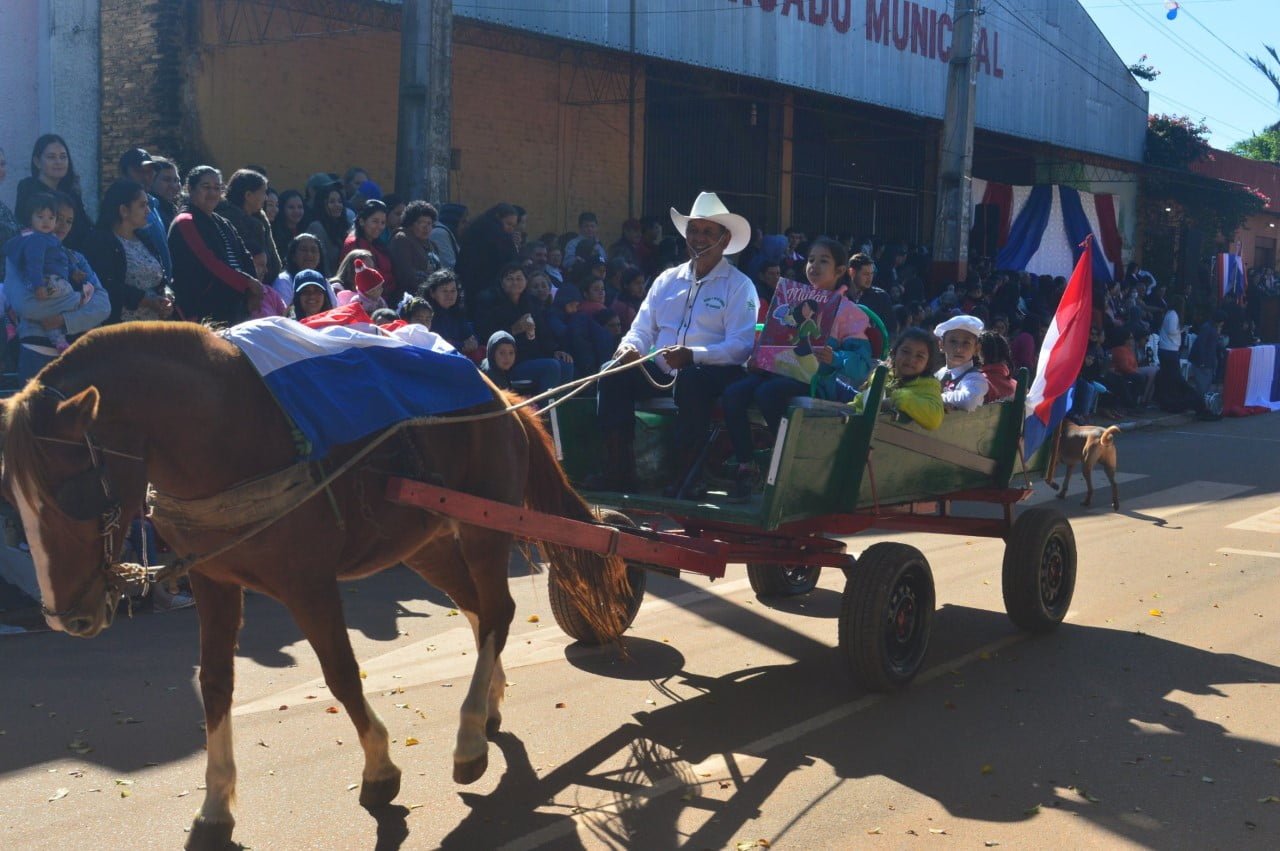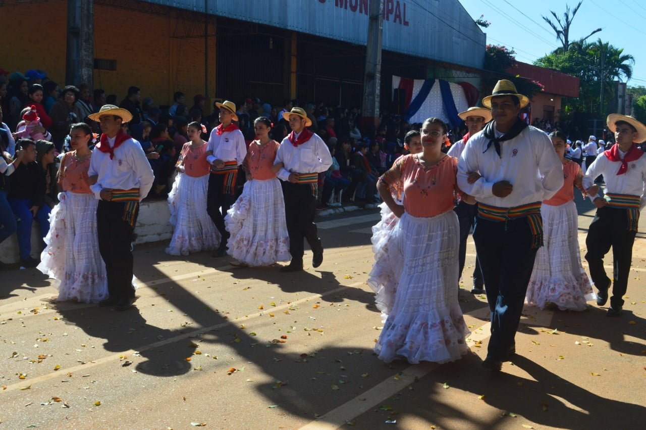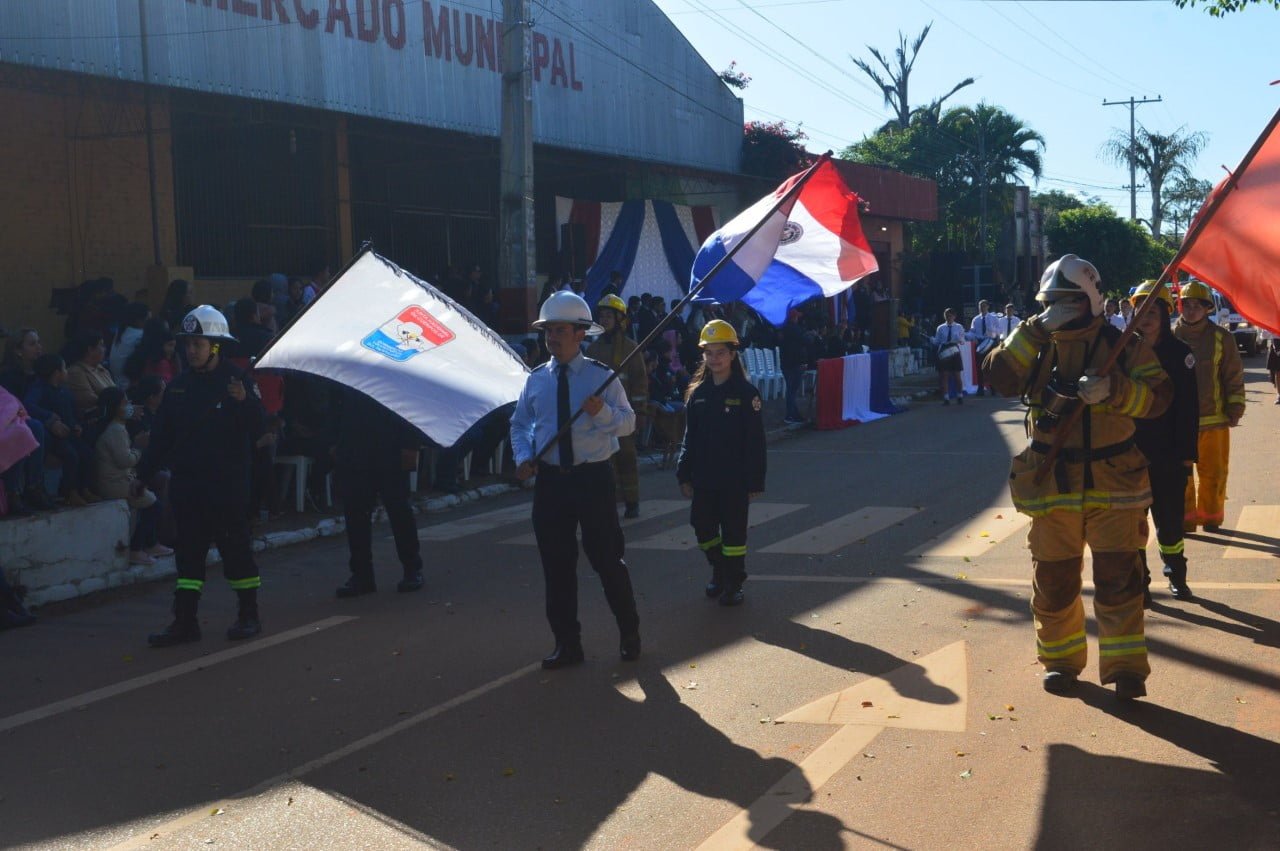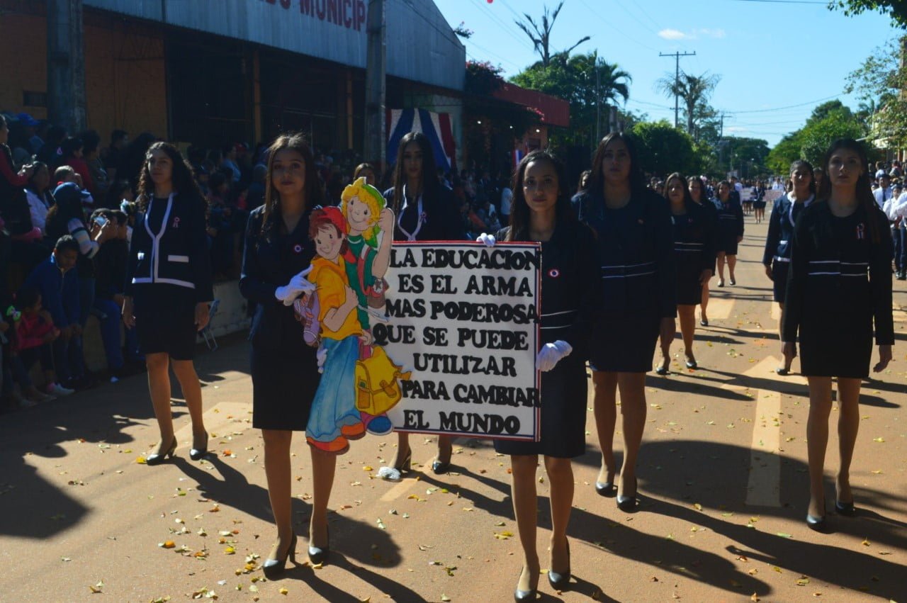 Encabezó el desfile, el Cuerpo de Bombero local, perfectamente uniformado, La Escuela Parroquial Pío XI, El Instituto de Formación Docente (IFD), el Club de Lectura Infantil. Luego lo hizo el Colegio Nacional Jorge Bernardino Gorostiaga y por último el Colegio Parroquial Pío XI.
