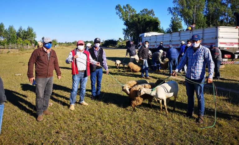 Con el objetivo de fortalecer la producción pecuaria local, técnicos del Viceministerio de Ganadería, realizaron la entrega de animales menores, fardos de heno y kit veterinario a productores de los distritos de Loma Guazú, General Díaz y Paso de Patria, en el departamento de Ñeembucú.