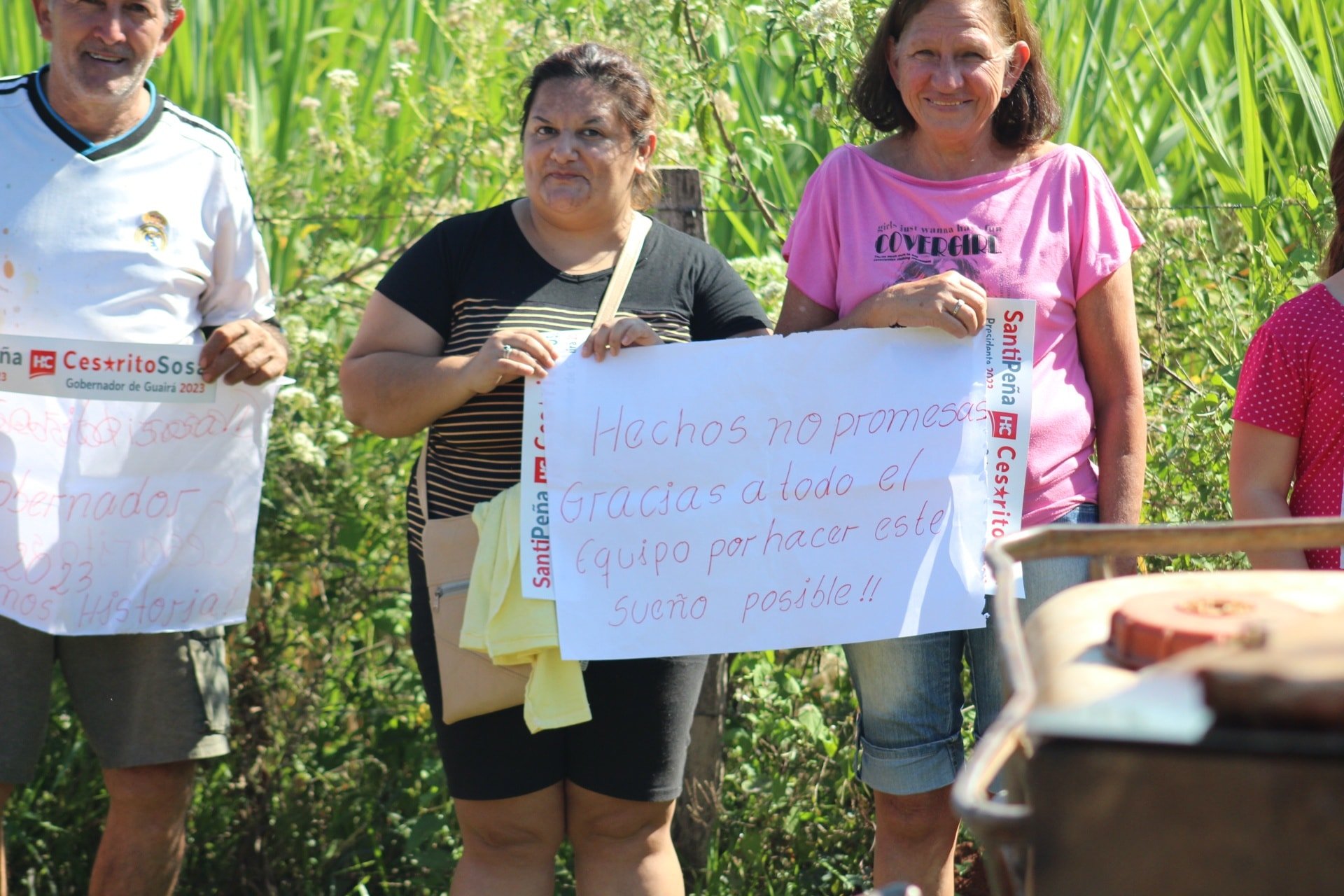 «Hoy llegamos a más familias del Guairá que nos recibieron con felicidad y esperanza renovada por un porvenir mejor, en la comunidad de Calle’i de la Colonia de Caroveni donde llegamos con nuestro equipo de trabajo a realizar una perforación de pozo artesiano que beneficiará a más de 70 familias